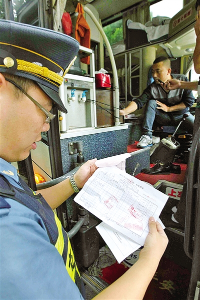 中午时分,一拨拖着大小行李在南白象加油站等候的旅客引起了执法人员的注意。果不其然,没过多久,一辆河南牌照的大客车驶入加油站,车上下来几名乘客,执法人员当即将该车截获。执法人员上车发现,车上乘客仅有7名,而驾驶员出示的行车路单上写明,始发时乘客有13人。