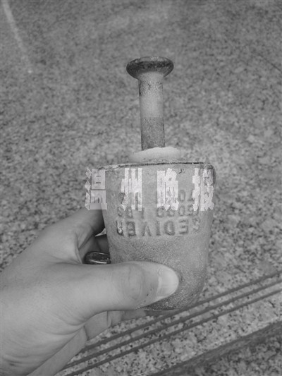 前天上午7时许,老严提着“地雷”来到乐清公安局大荆派出所。民警们看到“地雷”也吃了一惊,连忙将“地雷”放到后院空地,并联系乐清市公安局治安二大队,他们负责民用爆炸物品管理。