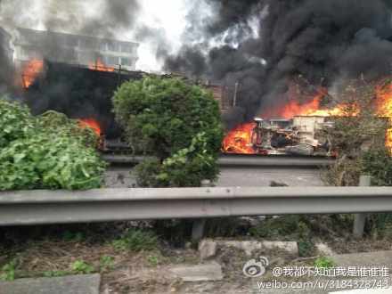 有网友发帖称,为一辆运送“油桶”的小货车与一辆大货车发生碰撞,引发大火,“火焰窜的两栋楼高”,飞溅物导致附近的多辆小轿车着火。