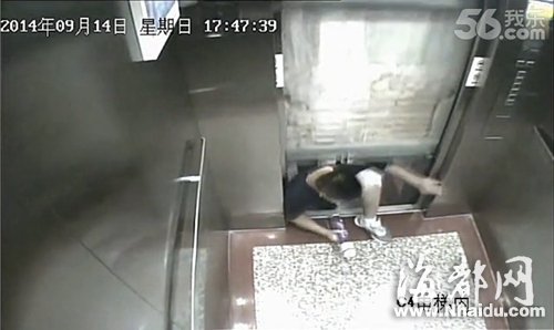 厦门:男生被电梯卡死监控视频曝光 事故经过仅4秒