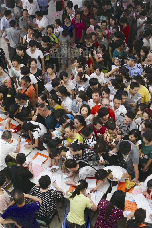 昨天下午,记者在报名人群中还看到几名穿着制服的民警。鹿城公安分局中山派出所民警包长昕说,下午2时许,所里接到群众报警,称“温州少图一楼大厅人多挤得受不了”,所里三四名民警及六七名协警立即赶到现场维持秩序。