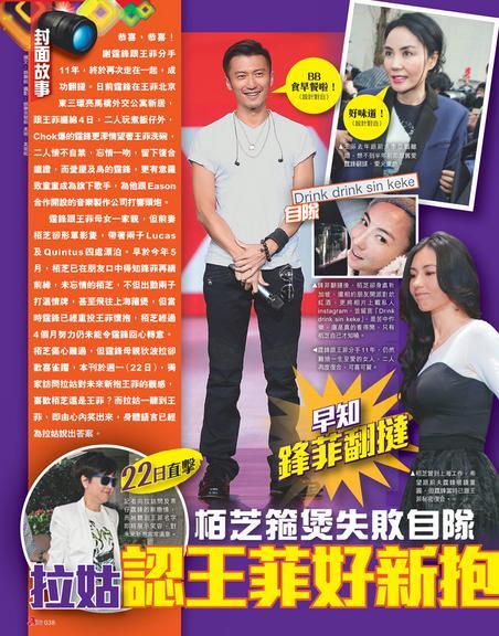 锋菲二人幸福甜蜜,双双对对,但霆锋前妻张柏芝,却形单影只,跟霆锋破镜难圆。张柏芝跟霆锋离婚后,对于过往的荒唐生活,深感后悔,决意洗底的她,不时带Lucas及Quintus到游乐场,对两子照顾有加,尽展好妈妈一面,便是希望有日能跟前夫霆锋复合。但锋菲已秘密复合半年,虽然二人刻意爱得低调,却早有人向张柏芝通风报信,而当张柏芝知悉霆锋于6月会出席上海电影节,而早在5月底,张柏芝便飞往上海逗留,以两子Lucas及Quintus,向霆锋大打温情牌,希望霆锋能够回心转意,一家团聚。想不到王菲却跟霆锋同日飞抵上海,其后双双度过不少甜蜜时光,而张柏芝虽然同在上海,但霆锋正跟王菲沐浴爱河之中,无论张柏芝如何努力,也未能让霆锋重投自己怀抱。