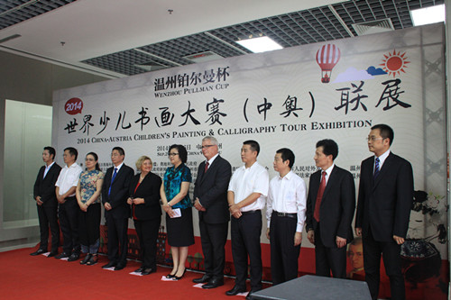 昨天,温州迎来了世界少儿书画大赛(中奥)联展,它将见证温州与奥地利维也纳九区结为友好交流城市这一具有历史意义的时刻,增进双方的友谊,促进温州与世界的文化交流。