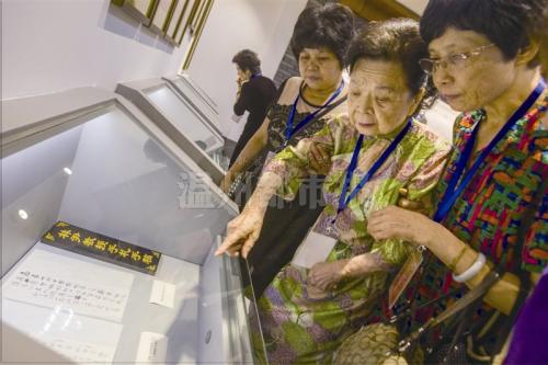 昨天上午,林尹的大女儿林慰曾(右二)参观父亲著作及部分文物陈列馆。姚卡/摄