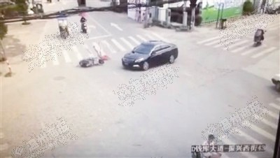 助动车撞轿车受损严重 司机腾空一周落地安然无恙