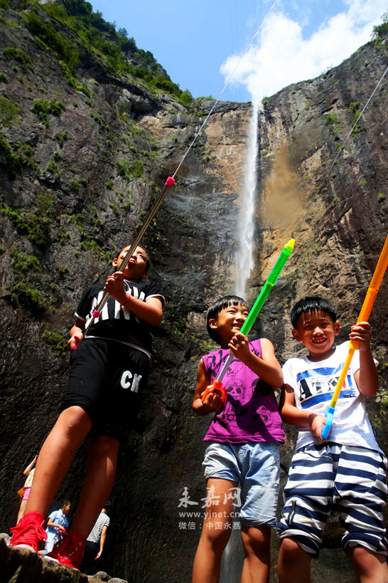 温州网永嘉支站讯 10月1日,记者在百丈瀑旅游度假区里看到,孩子们欢快的玩耍着,更有许多游客登高远眺,最吸引人眼球的当属现场的飞渡表演和动力滑翔伞表演了,让来往的游客大开了眼界。