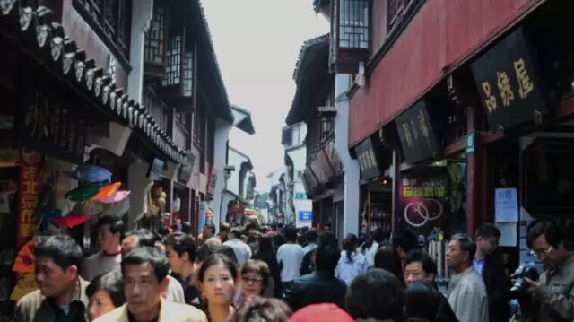 游客鲁小姐说,水乡周庄的桥边,商户一家挨着一家,出售着随处可见的廉价旅游商品。空气中弥漫着一股油腻的肉味,街道河道两旁到处都是熟食店、饭店、丝绸店、古玩店,静谧、悠闲的传统水乡景色已经很难见了。