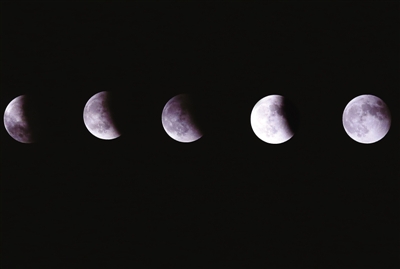 月全食的过程分为初亏、食既、食甚、生光、复圆五个阶段。此次月全食最大的特点是“带食而升”,由于“初亏”时间从17时14分开始,也就是从白天就开始了,因此市民在傍晚时分观测时,月亮就已经被天狗“咬”了一口。而从18时30分到19时30分,这一个小时内能看到“红月高挂”的壮美奇观。19时30分左右红月亮会突然“消失”,之后直到20时30分又可以欣赏到“洁白”的月亮逐渐变圆的过程。