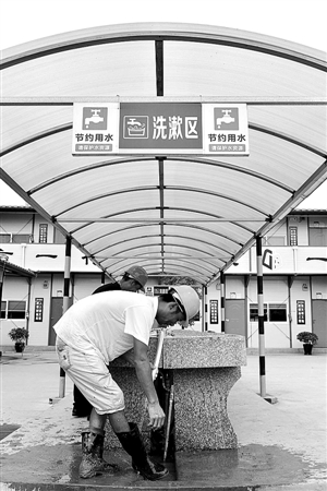 职工生活区也同样充满环保节能元素。生活区照明全部使用LED节能灯,浴室安装了太阳能热水器,冲洗厕所和地面保洁用水都来自循环水塔。“相比以前的工地,这里住宿环境干净卫生,上班的心情都变好了。”工作人员王鸿志告诉记者。