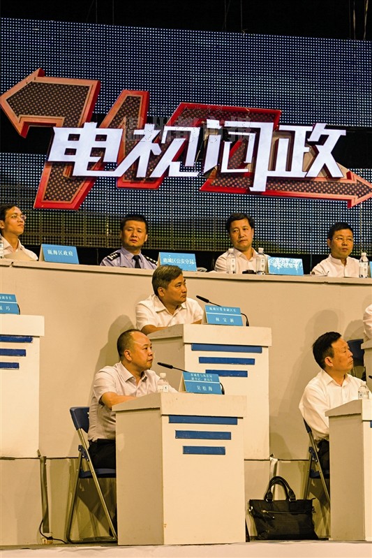 在电视问政现场,被问政嘉宾对案例进行回应。姚卡/摄