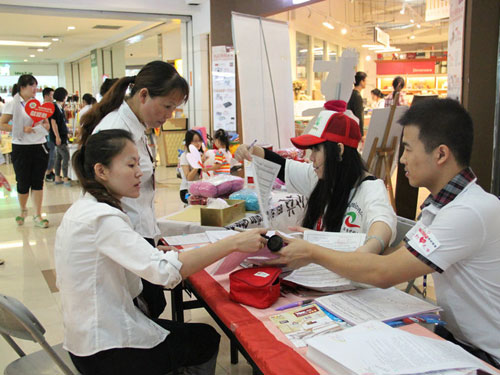 自蓉带领志愿者免费向广大爱心人士发放爱心围脖编织毛线