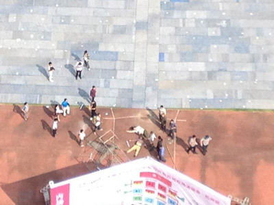 微博原文:“今天上午,由于受大风影响,杭州制锐广告公司的施工人员对黄龙体育场内原有的座位指示牌进行加固,因短时狂风导致广告牌略有后倾,施工人员从高处跌落,目前人员已送往医院进行抢救。此前传出的黄龙体育场中国好声音演唱会主舞台脚手架坍塌系不实消息,特此澄清。”