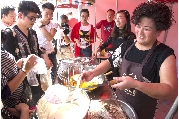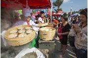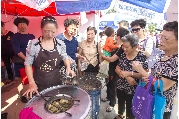 在西门陈三云小笼包摊位前,西门河头社区党委书记高美英看到商家人手不够,和社区的几个工作人员一起帮忙包饺子。“真想不到人流量会这么大!这家店开了25年了,上午做小笼包发现速度太慢,下午就改煎饺了。”高美英笑着说。一市民吃完煎饺后,竖起了大拇指。