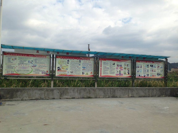 龙川公园位于仰义龙川村湾底路,是刚刚建立的公园,总占地面积1.5亩,是环境清幽的开放式公园,人流量较大。今年,“为创建市级无邪教村居,建设美丽家园”,龙川公园被打造为以“崇尚科学、反对邪教、共建和谐”为主题的反邪教主题公园,起到了较好的宣传效果。反邪教主题公园宣传阵地主要由4块不锈钢宣传栏组成。宣传栏内容主要介绍了邪教的定义、邪教的本质、邪教的主要危害等内容,它可以帮助市民更加直观的认清邪教组织,正确区分传统宗教和冒用宗教名义的邪教组织,从而树立“崇尚科学、反对邪教”的科学理念,营造一种健康向上的思想文化氛围。
