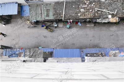 陈先生打完报警电话,又想办法将小丽从雨棚凹陷处抱到地面。