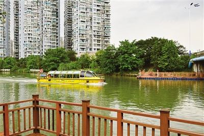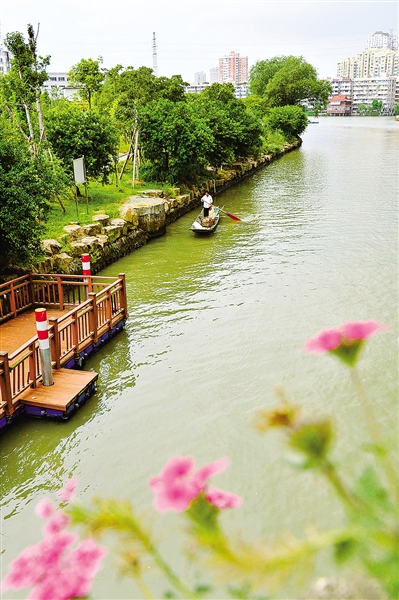 曾经这里是河边脏乱的卫生死角,有“啃”不下拆不掉的违法建筑,如今一湾碧水,两岸绿树婆娑,当记者再次行走在会昌河水上公园D1段时,林木环绕、流水潺潺,伴着清新空气,滨水公园的气息扑面而来。