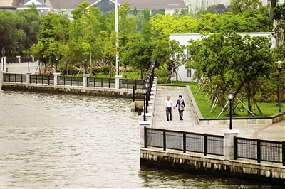 记者沿郭先生说的线路走了一次,发现这条滨水绿道水清岸绿。更让市民欢心的是,这条滨水绿道是许多企业一起退河还绿的成果。市园林局的工作人员说:“吴桥附近的旧货市场退河8米,让出3000多平方米建设绿道;紧邻旧货市场的中梁房开公司也主动退河8米,连接绿道;加上与中梁首府毗邻的温州电业局、温州市现代服务业投资集团有限公司主动退河还绿,这条绿道终于贯通了。”