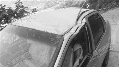 岩石塌方砸中轿车 三人脱险