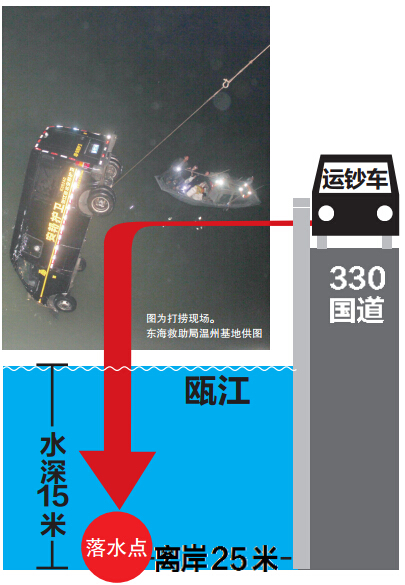 运钞车坠入瓯江 救援人称车上载有200多万元现金