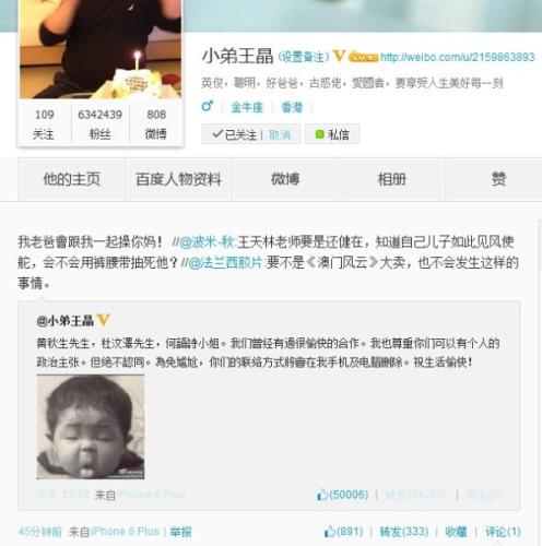 王晶的微博发出后,引来众多网友的的围观,其中有不少指责的声音。而王晶也在微博持续发飙,与这些网友展开骂战,其中有不少如“我X你全家”之类的粗口。
