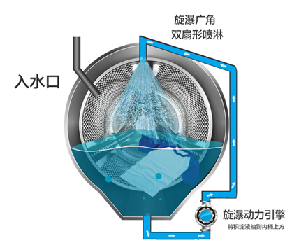 据海信洗衣机工作人员介绍,旋瀑洗技术是通过旋瀑动力引擎把洗衣粉沉淀液抽至内筒上方,在洗衣全过程中配合360°瀑布水流冲洗,告别了普通洗衣机进水时才能进行简单喷淋的弊端,使衣物洁净更彻底。同时,该技术还配有扇形瀑布喷淋功能,在洗衣过程中形成强劲的水流冲刷,在去除顽渍的同时还可促进筒内水流立体翻转,强力冲散衣物,使其不再缠绕。“形象地解释,就是将“盆浴”和“淋浴”结合起来,双重功效确保衣物洗得更干净”海信研发人员介绍。
