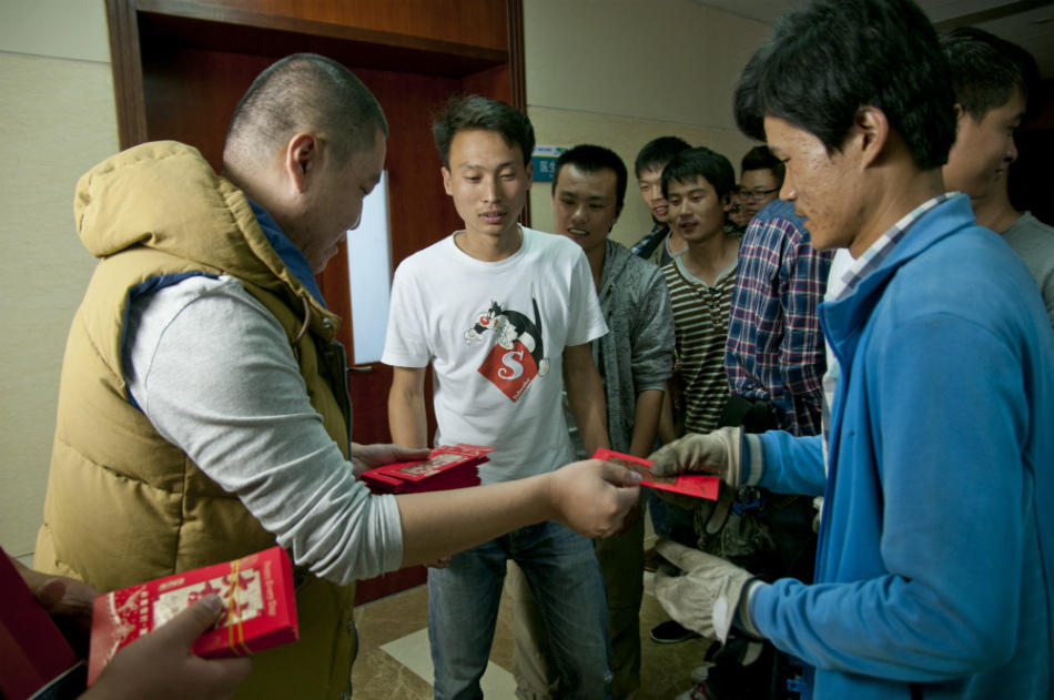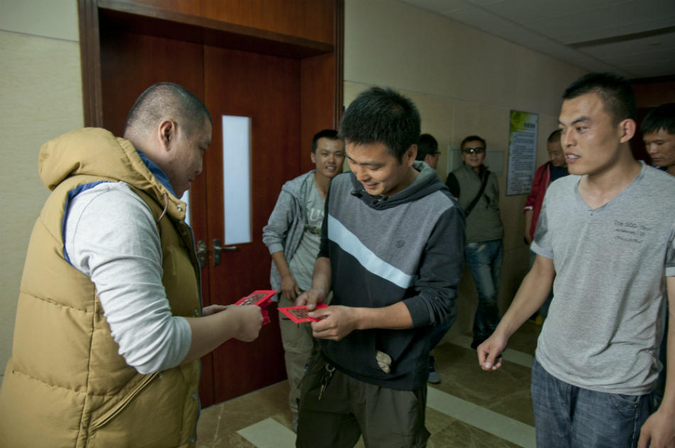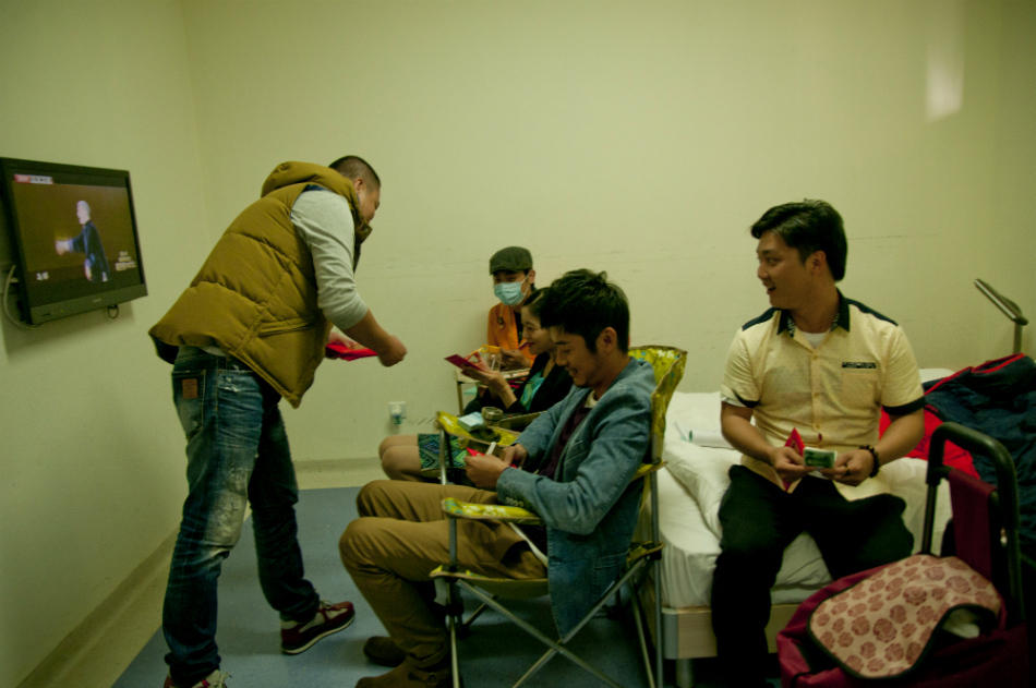 腾讯娱乐讯由好风影视制作的强情节都市情感励志剧《第二次人生》将在2014年11月10日登陆江苏卫视黄金档开始全国首播。该剧还未播出,就获得了业内人士的高评价,认为它能“领跑秋季档大剧”。今日该剧曝出了一组春节拍摄花絮照,剧组在拍摄现场给主创和工作人员派发红包,王媛可(微博)和芦芳生等人一脸“窃喜”。此外,剧组还安排主创的家人到片场过团圆年,被大家赞为“中国好剧组”。