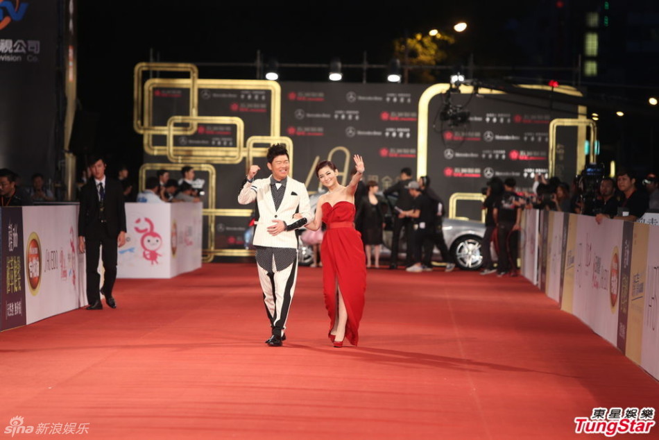 组图:金钟奖红毯 selina着红色抹胸长裙秀香肩
