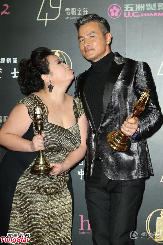 腾讯娱乐讯第49届金钟奖典礼落幕,“小龙女”老公李铭顺和首次凭女主角入围的钟欣凌夺得视帝视后,新科视帝视后在后台玩HIGH,现场互亲,彼此互玩公主抱。