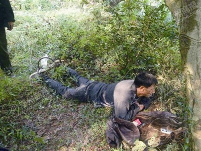 男子上山砍柴不慎被野猪夹夹住。警方供图