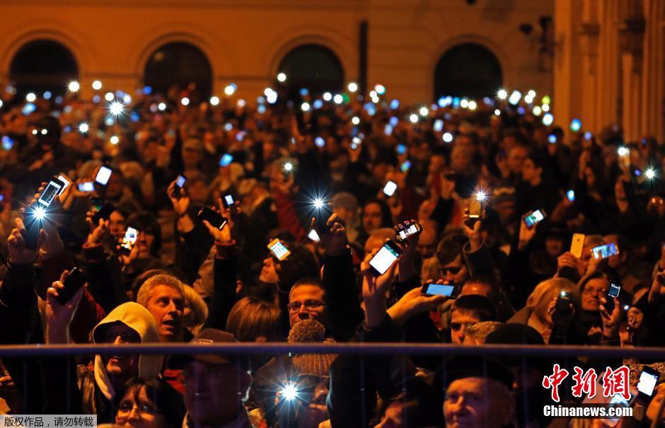匈牙利数千人举手机 抗议网络流量征税