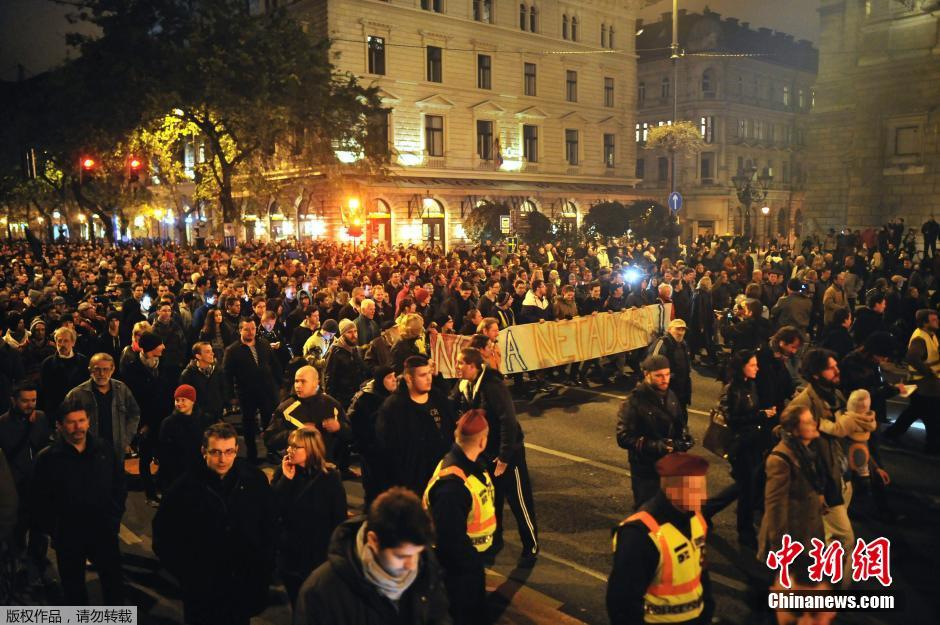 匈牙利数千人举手机 抗议网络流量征税