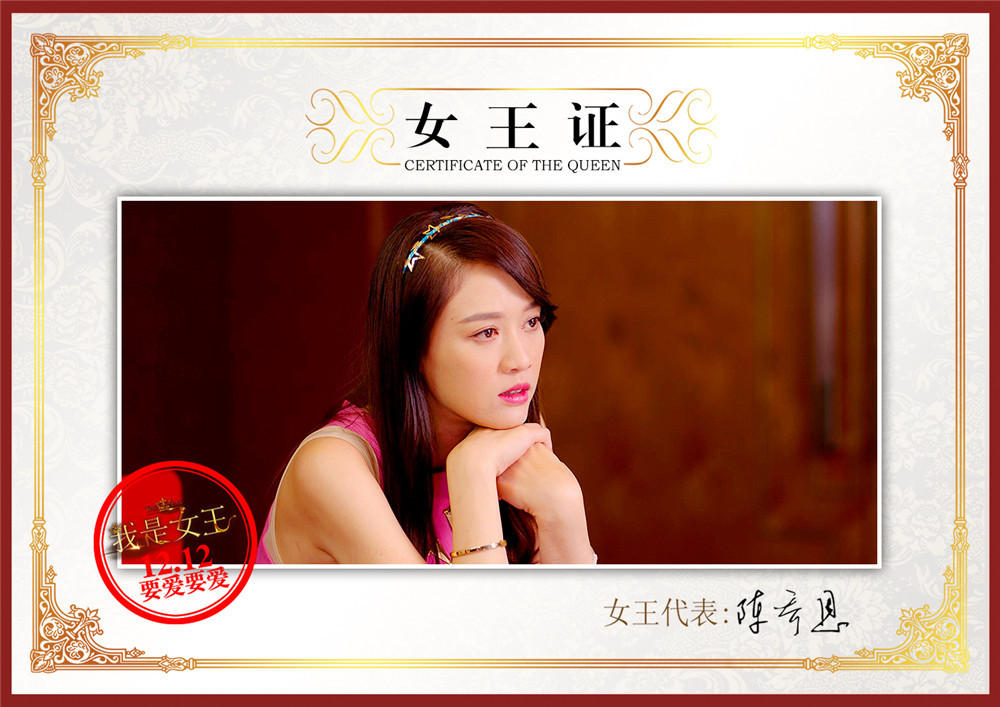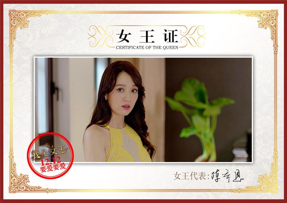 据悉在《我是女王》中,凯蒂这一角色经历了爱情的“九死一生”后终于找到感情的出路。现实中的陈乔恩在诠释了如此耗费精力的角色后,全组也特意为其的精彩演出,制作了一组女王证,而成功加冕女王的陈乔恩也对感情获得全新感受,她表示:“我觉得现在的女生,你一定要懂得爱自己,不管是照顾好身体,照顾好皮肤,照顾好你的工作,当你开始懂得爱自己的时候,才可以去爱你的生活,爱你身边的人。”