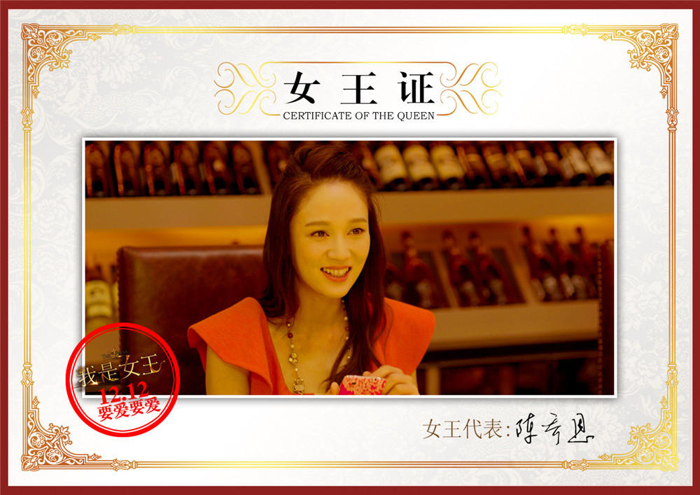 腾讯娱乐讯有陈乔恩(微博)突破演出的电影《我是女王》进军贺岁档,该电影由伊能静(微博)首次执导并出演,将于12月12日上映。影片集合中韩著名艺人宋慧乔、陈乔恩、邬君梅(微博)、伊能静组成四大女王,窦骁(微博)、杨祐宁、姜武(微博)、郑元畅(微博)、秦昊组成五大男仆,四女五男全力演绎角色人物,共同上演爱情好戏。今日,片方为表彰陈乔恩此次突破尺度的演出,特意颁发一组女王证,女王证中陈乔恩的性感造型更贴合角色在片中“被小三”、“被虐”的戏码,全新气质搭配成熟演技,获得全新自我。