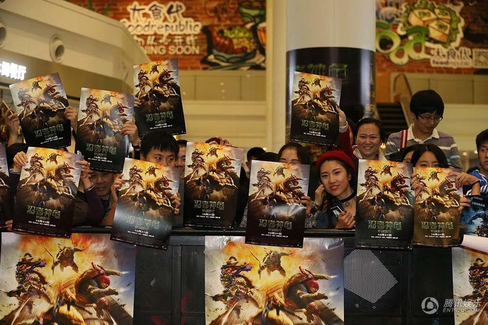 腾讯娱乐讯2014真人特效版《忍者神龟:变种时代》(以下简称:《忍者神龟》)将于10月31日强势登陆中国内地。10月26日影片在京举行了盛大的发布会和首映礼,在首映礼红毯后的超前观影中,数千观众有幸在影院提前欣赏了此年度巨制。观影结束后第一时间对观众进行采访,观众好评度高达98%几乎找不到不喜欢“神龟”的理由,而大家提到最多的除了影片的超强特效和动作爆笑戏份外,更预测其票房10亿起步。