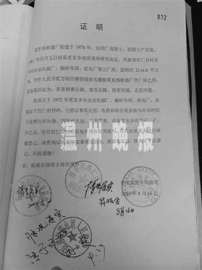 上周二,记者带着村民所提供的材料,曾向乐清市国土资源局地籍管理科作了反馈,科长戴建业表示,此事将转交他们柳市分局调查。