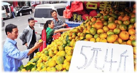 究竟是什么原因导致柑橘价格下滑呢?市区十八家农贸市场一位陆姓水果批发商说:“价格下滑有很多综合因素,如市场经济状况、柑橘竞争环境等,最主要还是由于今年的柑橘供大于求。”