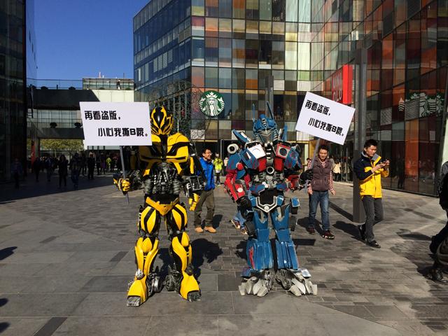 其实,这次变形金刚上演的“行为艺术”是电影《变形金刚4》联合制片方1905电影网精心安排的小插曲,起因是网站推出电影《变4》独家付费点播后,遭遇盗版不断,其中不乏搜狗这种知名搜索引擎,尽管网站已实施法律手段进行维权,但盗版猖獗下,还是给1905电影网的品牌以及《变4》的点播票房收入带来了不小的损失。这次”穷游北京“就是想让大家从另一个角度看到擎天柱和大黄蜂因为盗版的侵害已经穷困潦倒了。感兴趣的网友也可以通过新浪微博参与#变形金刚穷游北京#话题讨论,还可获得由1905提供的免费观影兑换券。