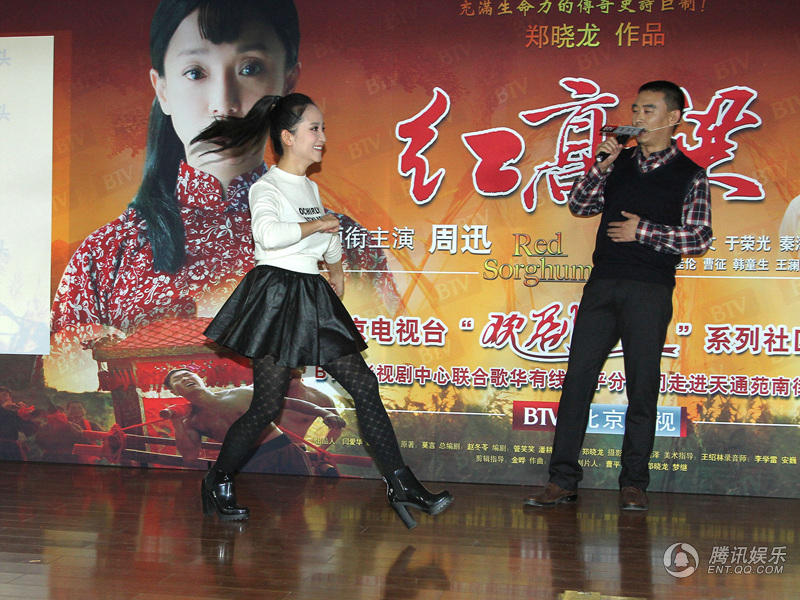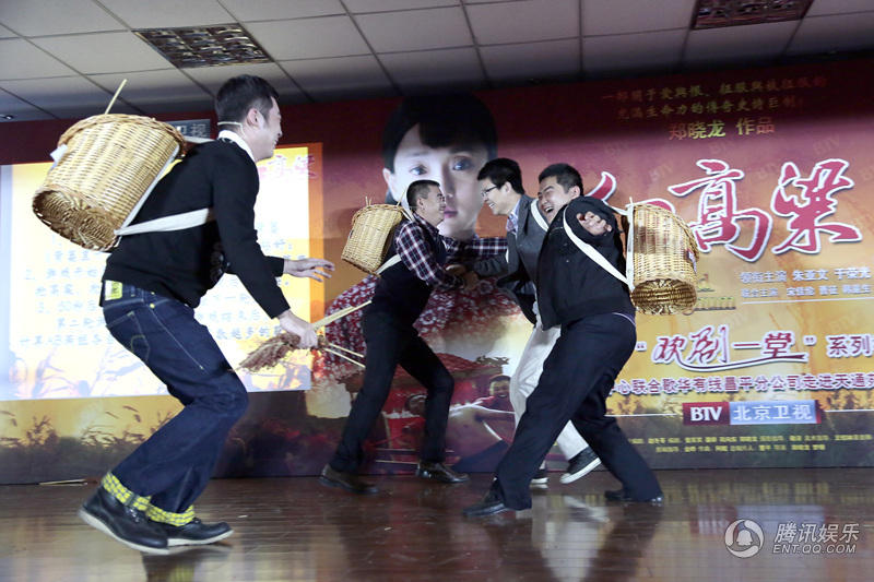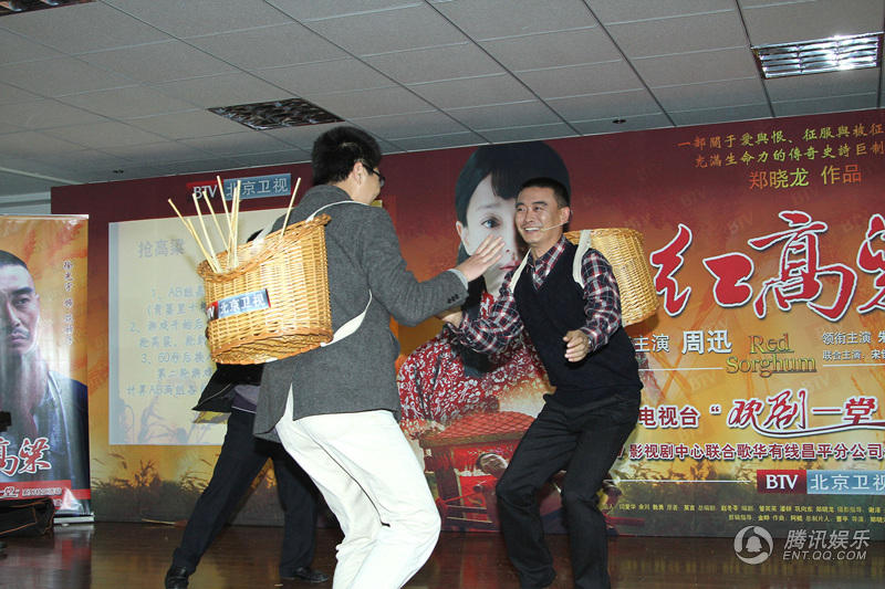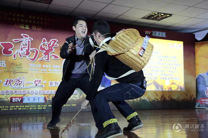 腾讯娱乐讯(文/小方芳)传奇大戏《红高粱》正在北京卫视热播。11月4号,该剧中的四位主创曹征,徐光宇,杨梅,谢惠玲跟随北京电视台“欢剧一堂”活动一同走进天通西苑小区,与街坊百姓进行了亲密互动,分享戏里戏外的有趣故事。全剧组人员与观众“欢剧一堂”,为观众准备了养生好礼豆浆机,活动现场惊喜不断。台上台下齐做“五谷丰蹲”,徐光宇愿赌服输,高歌剧中名曲;曹征为“高粱粉”谋福利,游戏里“不择手段”抢高粱。演员观众欢笑不断,台下掌声根本停不下来。
