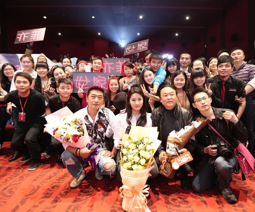 对于刘亦菲与高希希的第一次合作,重庆观众也是相当支持。不仅每场都有神秘礼物相送,版画、素描、鲜花应有尽有,更是有军人粉丝放弃训练任务远道而来,阿姨粉现场忘年表白,引得导演高希希、主演刘亦菲和邵峰惊喜不已,连连用重庆语调“我爱你”、“巴适得很”对观众表示感谢。