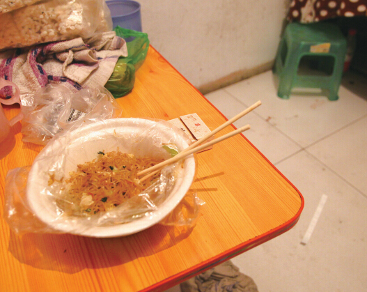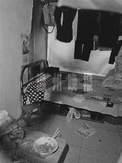 昨天下午,记者在现场看到,这是一间两层楼的群租房,门口进来有一条狭长的通道,左手边第三间便是案发现场,房门已被上锁。透过房间一侧的窗户缝隙,记者看到10平方米不到的房间里,放着床、桌子、电视、厨具、自行车等,墙上还挂着衣服,桌子上有一碗没有吃完的炒粉干,房间显得非常拥挤和凌乱。