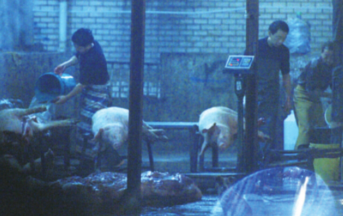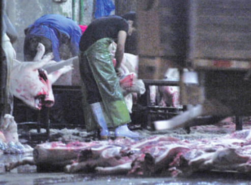 他说:“我们一直都是这样运的,没什么事的,挂着运与平放着运,还不是一样,要那么多讲究干吗?”说完,他似乎对记者的身份产生怀疑,不说话了,转身进入了屠宰场。