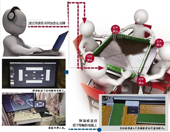 微型耳麦、视频监控、出牌软件等,加上严密的人员分工和巧妙配合,这些影视作品中的“老千”设备和手法,在瑞安出现。