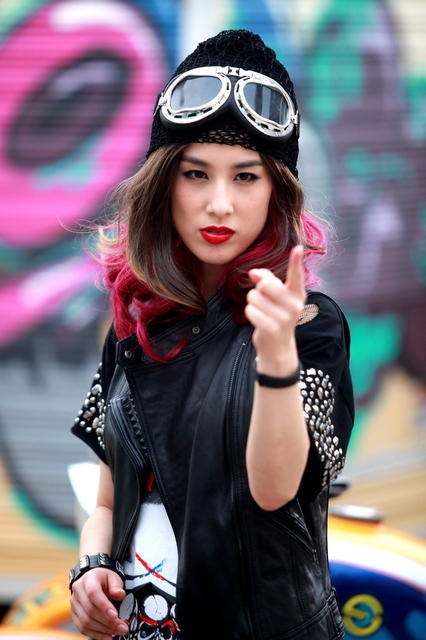 影片中,黄圣依让人眼前一亮完全没有想到的造型,是红色长发黑皮夹克配超短裙的朋克机车女形象。朋克机车女的座驾摩托还有一个很好听的名字,叫做“泷泽萝拉”!突然看到这样的造型,很难认出这竟然会是黄圣依!