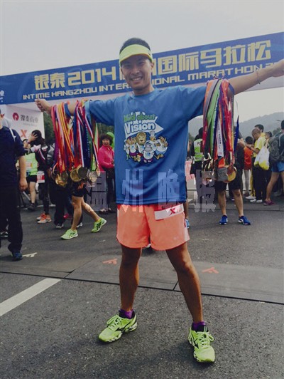 终于,在今年11月,他第三次跑杭马,实现了个人第100场马拉松。“2012年本来也报名参加杭马,但组委会后来因故改期举行,却又与曼谷马拉松在同一天,我就参加了曼谷马拉松,所以到现在一共参加了三届杭马。今后我还会参加,争取每年一届,不过要看报名情况,现在报名越来越难。”