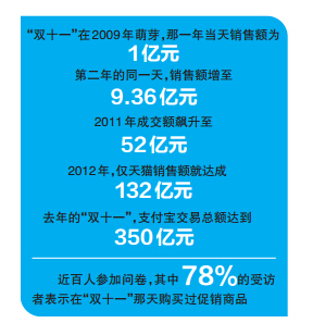 “双十一”在2009年萌芽。5年来,一个普通的日子,成了全民的购物狂欢盛会。在记者发起的一份《往年“双十一”你囤的货用完没?》的调查中,近百人参加问卷,其中78%的受访者表示在“双十一”那天购买过促销商品。这一部分人中,超过84%的人表示是在包括淘宝在内的电商进行的消费,但对于消费的质量和感受却爱恨交织。“双十一”即将来临,你是否已经往购物车里塞好了商品,准备在明天点上全选并且集体下单呢?