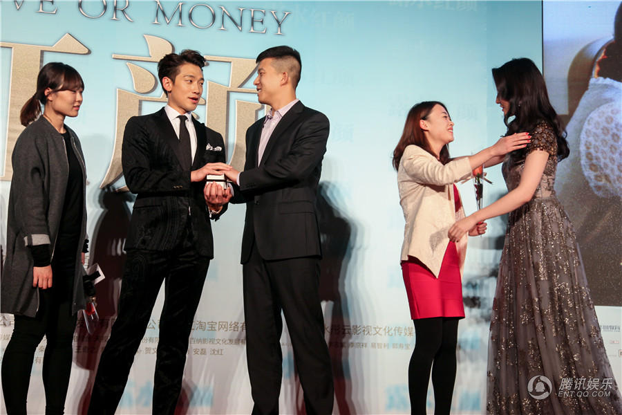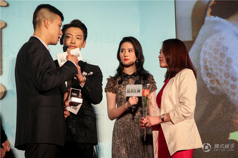 发布会现场游戏环节,主持人将具有人物特色的漫画信物送到众主演手中,戏里贪钱爱财的王学兵拿到人民币,刘亦菲拿到的漫画是被砸坏的手机,而Rain则是收获了一枚造型独特别致的钻戒。Rain手中的漫画引起了现场观众的好奇,他向大家介绍到:“这是在剧中向心爱的恋人邢露求婚的戒指,奔跑努力了那么长时间,都是为了这枚戒指能打动邢露芳心。而且这枚钻戒很大颗哦。”介绍到最后Rain露出可爱的笑容,似乎对Tower钻戒十分钟情,引得台下粉丝尖叫连连。