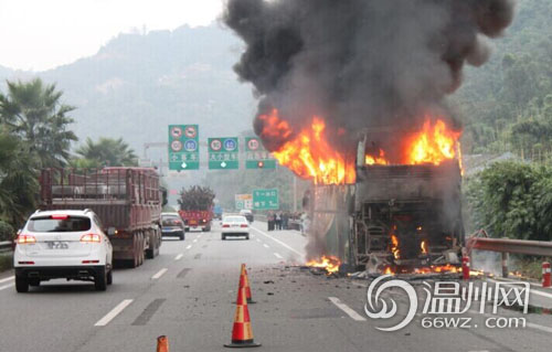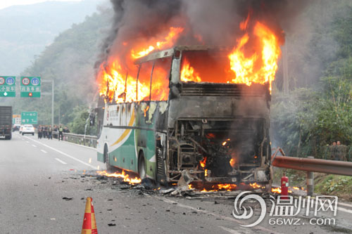 沈海高速瑞安段一客车起火烧毁 21名乘客有惊无险