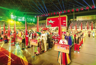 温州网讯 昨晚,第五届浙江省少数民族传统体育运动会在市体育中心隆重开幕。