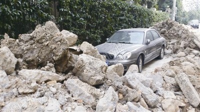记者通过电话联系上了浙江宸邦公司负责该项目的一名施工员杨先生。“我们委托路口的交通协警帮忙联系车主,但打了几个电话都说联系不上。”杨先生说,“你不知道,我们比任何人都希望能尽快找到车主!”原来,虽然车辆停放并未对施工造成太大的影响,但是施工人员在工作时却不得不更加小心,生怕石块会砸伤车辆。本想委托交警拖车,但得知需要交纳上百元的拖车费,施工单位就放弃了。