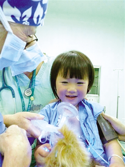 苏醒室里,突然传来一阵欢快悦耳的旋律。来自美国微笑联盟的Dr.Ajay弹着尤克丽丽(编者注:一种拨弦乐器。),迎接刚做完手术正慢慢苏醒的孩子。从接孩子进手术房到把孩子送出去,这当中的每个环节,医护人员和志愿者们都精心安排,各出奇招,希望能“让孩子笑着接受手术”,希望给他们留下美好的回忆。